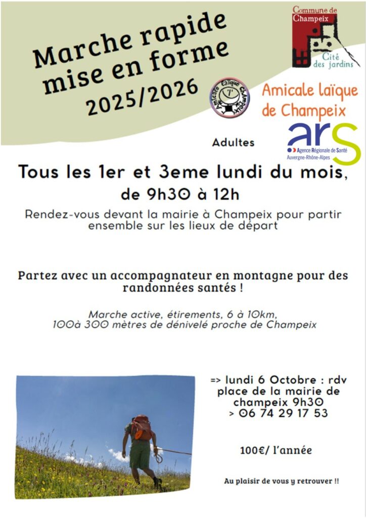 début de l’activité, lundi 6 octobre, à 9h30, rendez-vous devant la mairie de Champeix